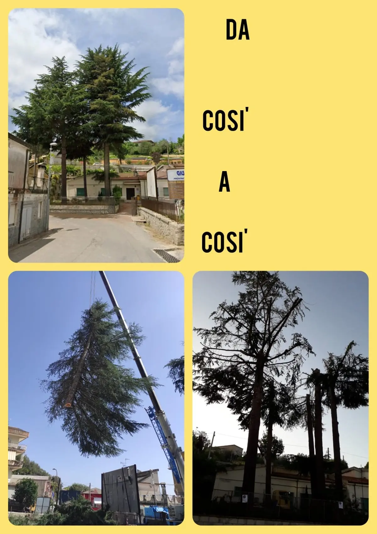 Da ricordare che sempre la Provincia di Vibo Valentia domenica 16 ottobre è andata a “toccare” i secolari cedri del Libano nel giardinetto del Liceo Classico di Vibo. Un intervento che per le modalità è stato pubblicamente denunciato dall’avvocato Alessandro Caruso Frezza. Ed anche qui il risultato finale è sotto gli occhi di tutti.