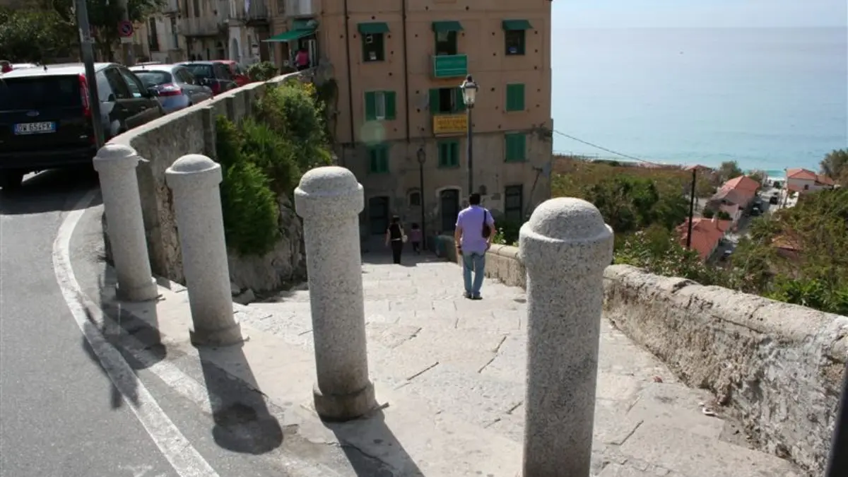 La frequentatissima scalinata del borgo che collega il centro storico di Tropea con le spiagge necessita da anni di urgenti interventi di ripristino a tutela dell’incolumità pubblica. Sebbene sia divenuta oggetto di manutenzione del verde e di potatura periodica di piante rampicanti, presenta un non felice stato di conservazione in alcune grate di scolo dell’acqua piovana, poste ai margini della discesa a gradoni. Le inferriate, arrugginite in alcuni punti, risultano infatti deformate o, addirittura, spesso mancanti così da lasciare scoperta la sede di scolo dell’acqua. Tale situazione, oltre a provocare il costante intasamento delle acque piovane a causa dei detriti più grossi che si infilano nella cunetta sguarnita di grata, rappresenta un serio pericolo di cadute per quanti utilizzano le scalette, specie in estate, al fine di raggiungere il mare o il centro storico in poco tempo. Non sono rari i casi in cui accidentalmente i passanti finiscano con il piede nella parte di grata mancante, così come i bambini che, anche per gioco, infilano un piede andando ad urtare la parte deformata dell’inferriata arrugginita.