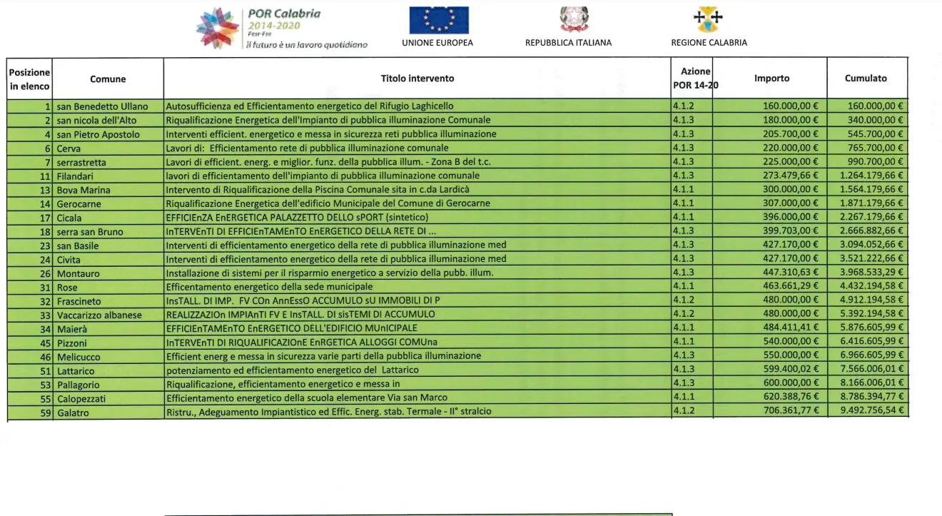 Ecco gli importi dei progetti dei Comuni vibonesi ammessi a finanziamento:
