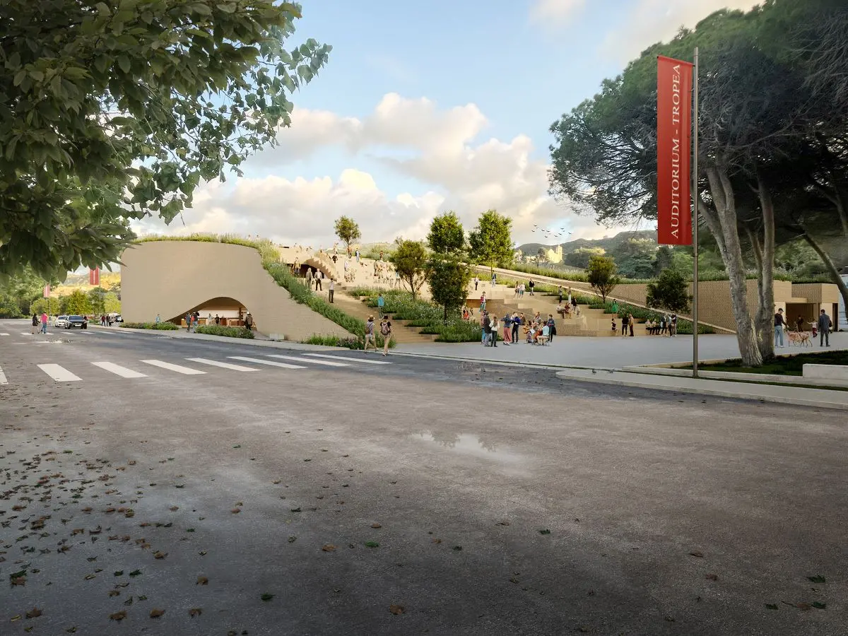 Lo studio Schiavello Architects Office firma la riqualificazione urbana e architettonica dell’intera area “Marina del Vescovado” a Tropea: un Anfiteatro, un auditorium e un parco urbano nell’area antistante al porto. Un’area pensata con linee sinuose che ricordano, da un lato, il profilo della roccia su cui si erge la città di Tropea e, dall’altro, le onde che si infrangono sulla costa e sull’Isola di Santa Maria. “La Città di Tropea – spiega l’architetto Francesco Schiavello, originario di Soriano Calabro – è una destinazione turistica nazionale e internazionale molto desiderata per il suo mare e il suo borgo e negli ultimi anni anche per i grandi eventi, così l’amministrazione comunale guidata dal sindaco Giovanni Macrì si è posta l’obiettivo di aumentare i servizi, puntando sulla riqualificazione di una grande area, che potrebbe ospitare migliaia di persone, facilmente accessibile dalle strade principali”. Lo studio di fattibilità approvato dal Comune e curato dallo Studio Schiavello Architects Office dell’Architetto Francesco Schiavello ha proposto quale soluzione un Complesso Architettonico moderno e funzionale, integrato con la natura e con il territorio, pensato come una grande struttura con linee sinuose che ricordano, da un lato, il profilo della roccia su cui si erge la città di Tropea e, dall’altro, le onde che si infrangono sulla costa e sull’Isola di Santa Maria, simbolo della città di Tropea. In particolar modo le rocce scolpite dall’acqua, i passaggi, le grotte che attraversano l’Isola, le scale che la percorrono, compongono un’opera architettonica che si amalgama pienamente con il contesto e allo stesso tempo risponde alle esigenze dell’ambiente.