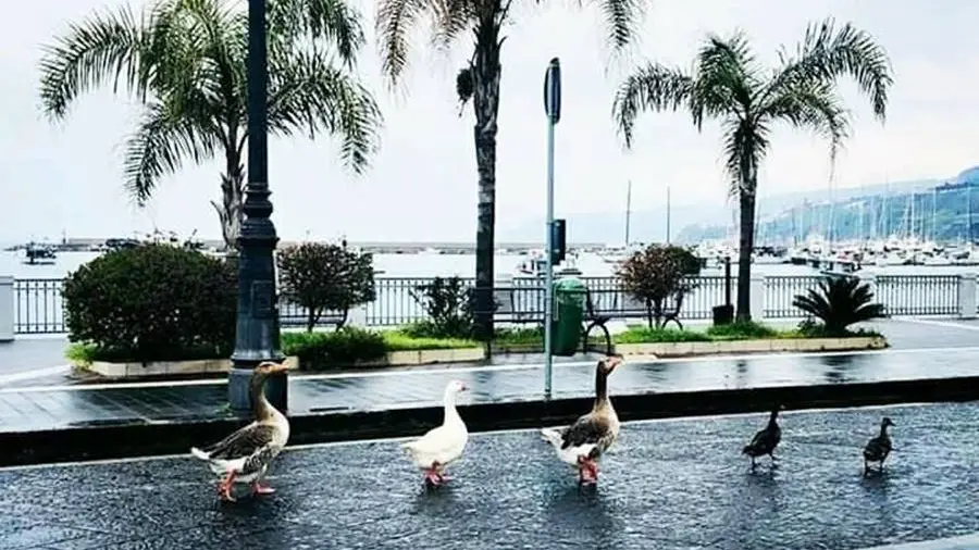 Gli sarà sembrato strano non vedere più il consueto traffico di automobili e persone in transito o a passeggio sul lungomare. Tanto strano da averle convinte ad andare a verificare in prima “persona” le ragioni dell’assenza del consueto tramestio, i motivi di quel silenzio anomalo. E così, di buon mattino, si sono spinte in formazione fin sul piano stradale lastricato. Fin lì dove solitamente passano decine di auto al giorno. In tutta sicurezza e indisturbate si saranno chieste: ma dove sono finiti tutti? “È la natura che si riprende il suo posto” ha commentato più un utente dei social network alla vista di questa emblematica foto il cui autore non è noto. “Se riuscissimo a capire l’importanza di questa immagine, daremmo un senso a quello che ci sta capitando” ha aggiunto qualcun altro. Come dar torto a queste considerazioni: è il mondo che si scopre più “umano” proprio ora che gli uomini si sono fatti un po’ da parte.