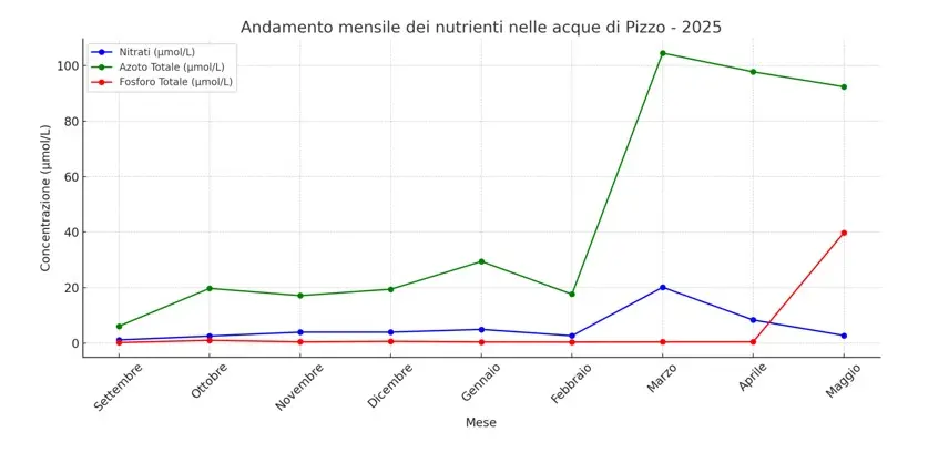 Nella tabella diffusa da Arpacal, si evidenzia l’andamento mensile di alcuni parametri delle acque campionate nella località Colamaio di Pizzo. «Si tratta – conclude la nota – di un punto costiero situato nell’area del golfo di Sant’Eufemia, interessato da fenomeni di coloritura anomala delle acque, dovuta ai pigmenti di una particolare microalga, monitorata da Arpacal».