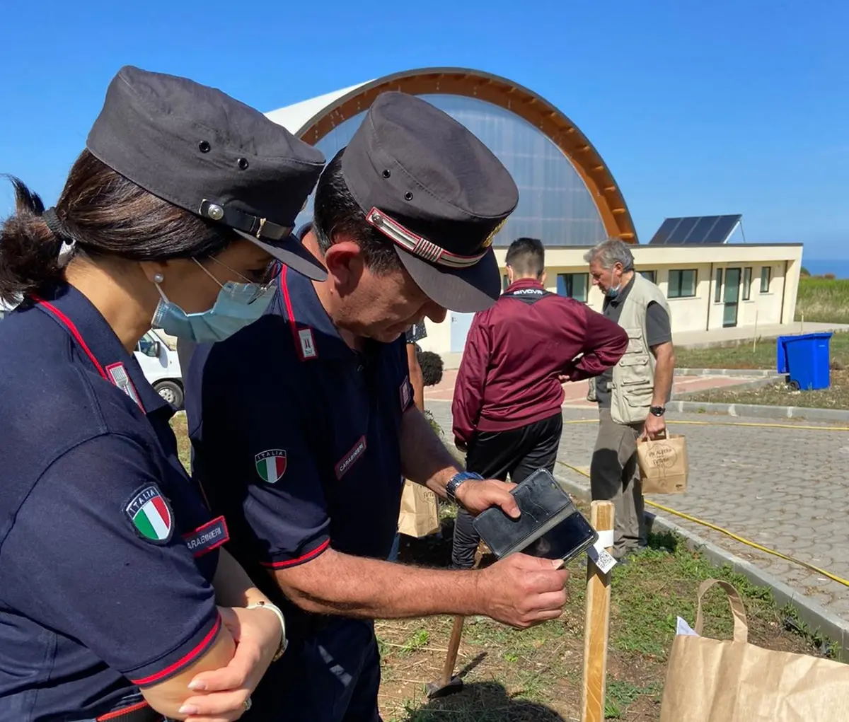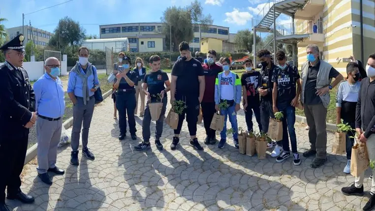 “Un albero per il futuro”. È il progetto realizzato dai Carabinieri della Forestale del Reparto Biodiversità. Si tratta di un’operazione che coinvolge le scuole, a partire dalla Primaria fino agli istituti superiori e che si protrarrà per tre anni. Nel 2021 si prevede che verranno messe a dimora circa 60mila piante boschive autoctone. L’idea alla base è quella di creare un bosco diffuso, piantando negli spazi adiacenti alle scuole delle piante tipiche del luogo (specie autoctone), e poi attraverso una mappa conoscere in tempo reale quanti alberi sono stati messi a dimora, di che specie si tratta e quanta CO2 viene assorbita. È una vera campagna di salvezza per restituire un ambiente meno inquinato alle future generazioni. Con questi valori e principi i Carabinieri della forestale di Mongiana, con sede a Villa Vittoria, si sono presentati nei giorni scorsi nella sede dell’istituto alberghiero “Enrico Gagliardi” di Vibo Valentia. A guidare la squadra il comandante del reparto, maggiore Rocco Pelle, di recentissima nomina (ha ricevuto l’incarico il 20 settembre). Ad accompagnarlo l’appuntato Maria Pia Rullo e il luogotenente Domenico Minichini (responsabile settore Educazione ambientale). Oltre ai carabinieri, gli operatori (Oti) che hanno messo a dimora le piante, 10 lecci e 4 cerri, con georeferenziazione sul sito appositamente dedicato, www.unalberoperilfuturo.rgp.bio.it. [Continua in basso]