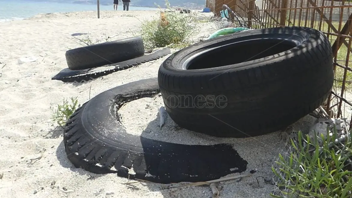 «Ce ne sono di auto e camion», dice. Ce sono diversi, alcuni in vista. «Saranno un centinaio sotto la sabbia», continua. Non sappiamo se sia vero. Non sappiamo se siano davvero così tanti. Qualcuno, però, è in bella vista, malgrado qualche giorno addietro, l’azienda che si occupa dello spazzamento e della gestione dei rifiuti abbia inviato un trattore per pulire la spiaggia. Una pulizia solo superficiale, evidentemente. Guardando quegli pneumatici verrebbe da pensare ad una pulizia utile a nascondere la polvere sotto il tappeto. «Abbiamo segnalato la loro presenza già lo scorso anno al Comune, sperando che fossero rimossi, ma non è successo niente», aggiunge il sindacalista che mostra anche delle foto. Recano la data del 19 agosto 2019. «È passato il trattore della Dusty – sostiene – ha portato via qualche rifiuto in superficie. Altro materiale è rimasto sotto, basta scavare, anche per pochi centimetri. E poi ci sono questi pneumatici».