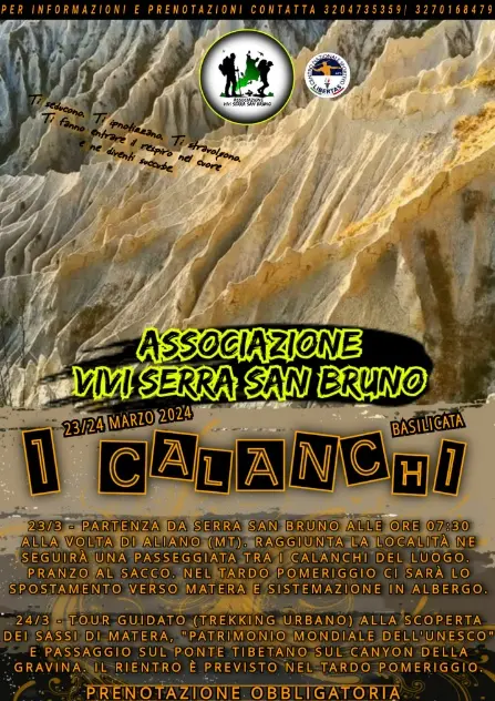 L’associazione “Vivi Serra San Bruno” alla scoperta dei calanchi in Basilicata. Si tratta di un fenomeno di erosione del terreno causato principalmente dallo scorrere dell’acqua. Scenari unici, dalla rara bellezza che caratterizzano anche località calabresi, tra cui Palizzi, nel comprensorio di Reggio Calabria. Al fine di intensificare i legami con altre realtà e associazioni attive fuori regione, il gruppo guidato dal presidente Mario Papasodaro ha programmato una escursione per le giornate del 23 e 24 marzo. «Il nostro obiettivo – ha spiegato il referente del sodalizio – è quello di allargare la conoscenza su territori dalle peculiarità importanti. Condividere esperienze, creare legami, parlare del nostro territorio. Sono questi alcuni degli aspetti che stanno alla base della nostra associazione». Papasodaro rimarca: «Per valorizzare e promuovere un comprensorio c’è anche necessità di confrontarsi. Per questo teniamo particolarmente a rinsaldare i legami con gruppi e associazioni di altre regioni». Grazie agli aventi passati, “Vivi Serra San Bruno” ha instaurato amicizie con sodalizi attivi in Sicilia, Campania, Basilicata: «La prossima tappa sarà Aliano, paese dei calanchi e del confino di Carlo Levi. L’area si trova immersa in un paesaggio lunare e l’abitato rientra tra i borghi autentici». Il viaggio proseguirà poi a Matera per ammirare la città millenaria e tutte le sue bellezze.