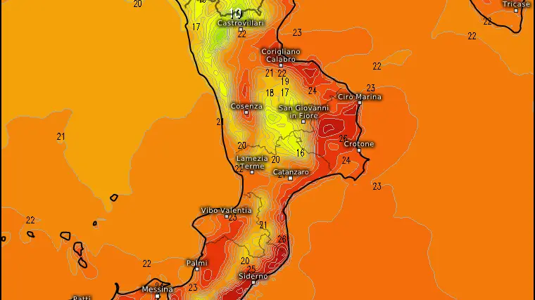 Già da domani, però, aria più fresca raggiungerà la Calabria, con un nuovo e generale crollo termico ovunque e temperature che si manterranno al di sotto delle medie stagionali.