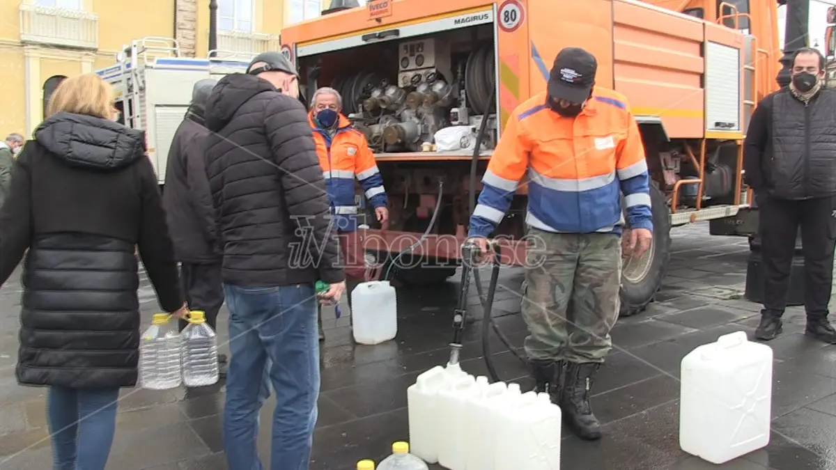 «Siamo da tre giorni senz’acqua, i disagi nelle nostre case sono enormi». Tre giorni di sete. Vibo Valentia fa i conti con una crisi idrica che non ha precedenti. Le autobotti di Calabria Verde e Protezione civile riforniscono una comunità assetata. La fornitura è costante, ma non basta mai: «Distribuiamo circa tremila litri di acqua ogni tre ore» conferma un operaio di Calabria Verde.