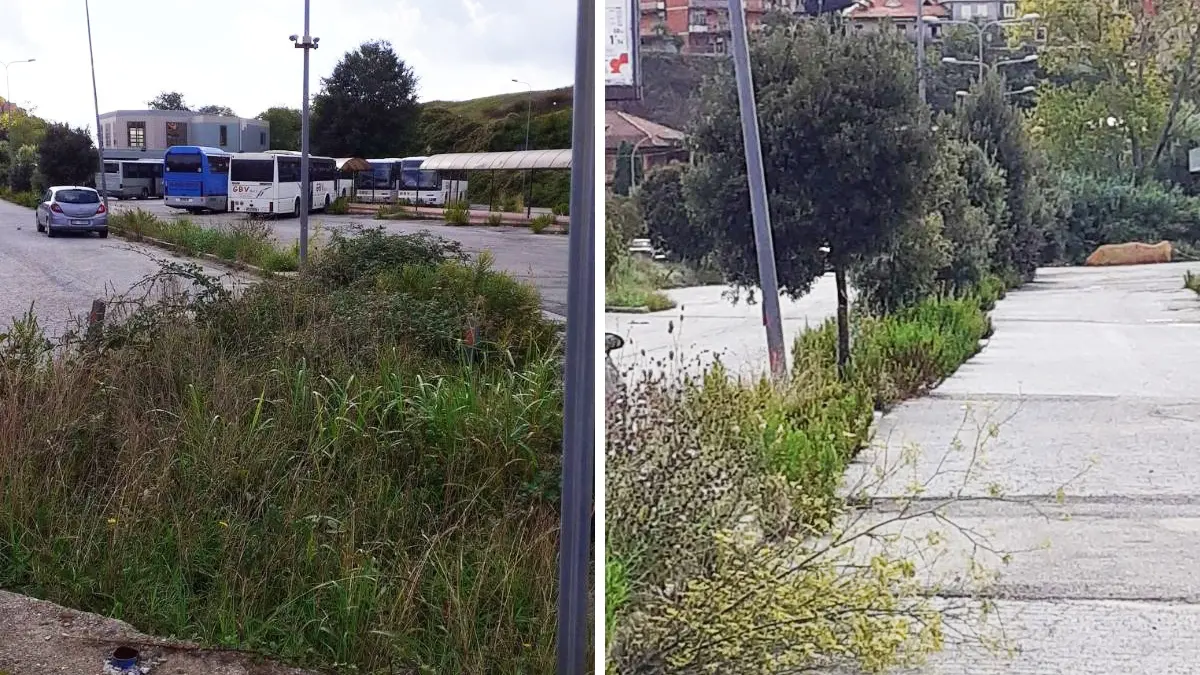 Punto di riferimento per più generazioni di studenti. Luogo di incontro ma soprattutto area di passaggio per consentire agli allievi frequentanti le scuole in città di fare da spola con i rispettivi paesi d’origine. Un piccolo “crocevia di culture” che ha segnato un’epoca e che oggi si presenta non nella sua migliore espressione. Così il Terminal bus, da oltre un ventennio al centro della vita degli studenti provenienti da fuori Vibo, appare come un deserto abbandonato a sé stesso dove crescono sterpaglie di ogni sorta. Una vegetazione spontanea che si riappropria di intere porzioni di carreggiata. Una vera e propria giungla. Le sterpaglie sono così alte e verdeggianti da superare in altezza gli sportelli delle auto. [Continua in basso]