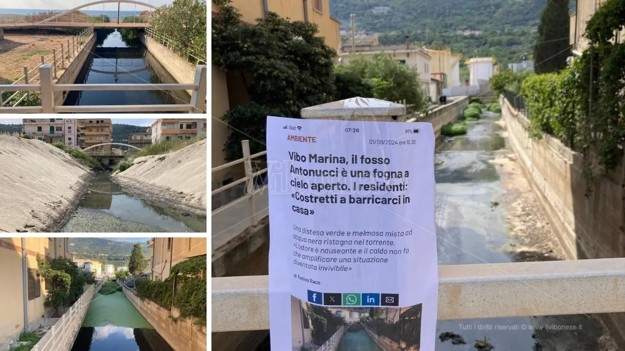 «Ecco, ci risiamo guardate cosa scaricano nel fosso Antonucci!». L’esasperazione dei residenti di Bivona e del Pennello, costretti a convivere con torrenti che inquinano il mare e l’aria con miasmi insopportabili, è massima. Da queste parti non c’è solo il Sant’Anna a vomitare i liquami fognari che incanala lungo il suo percorso dalla collina di Vibo verso la costa. L’altro sorvegliato speciale è il fosso Antonucci, nella sua mutante forma di colorazione e odore. Per lunghi periodi dell’anno, infatti, è una palude immobile ricoperta da una vegetazione malaticcia e verdissima. In altri momenti, quando salta il tappo di sabbia che sbarra il suo accesso a mare, fluisce liberamente per poi sfociare nello specchio d’acqua di Bivona.