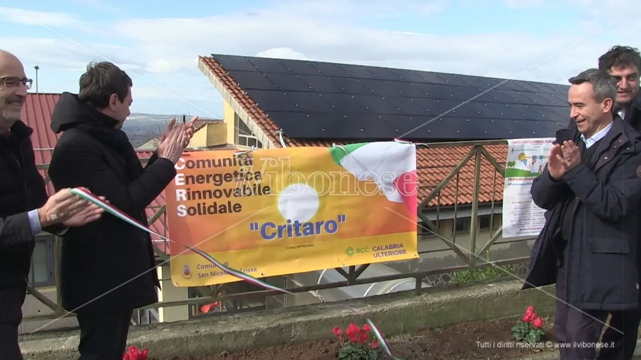 Inaugurata a San Nicola da Crissa la prima comunità energetica solidale della Calabria. Questa mattina, alla presenza di numerose autorità, la scopertura della targa davanti alla cittadella scolastica dove sono stati installati i pannelli solari. L’energia prodotta sarà condivisa con 32 famiglie delle case popolari. «Non sempre esportiamo idee positive – ha dichiarato il sindaco Giuseppe Condello -, e noi oggi lo abbiamo fatto. È un progetto importante – ha aggiunto – anche perché oltre ridurre le emissioni di anidride carbonica a beneficio dell’ambiente, darà un minimo di ristoro a 32 famiglie che avranno un risparmio in bolletta di 300 euro, una somma piccola, ma pur sempre un primo passo». Il primo cittadino ha poi dichiarato come l’obiettivo sia quello di produrre energia pulita e rinnovabile da distribuire a tutta la comunità di San Nicola da Crissa. «Questo avverrà nel giro di poco tempo», ha assicurato il sindaco del centro montano delle Serre vibonesi. [Continua in basso]