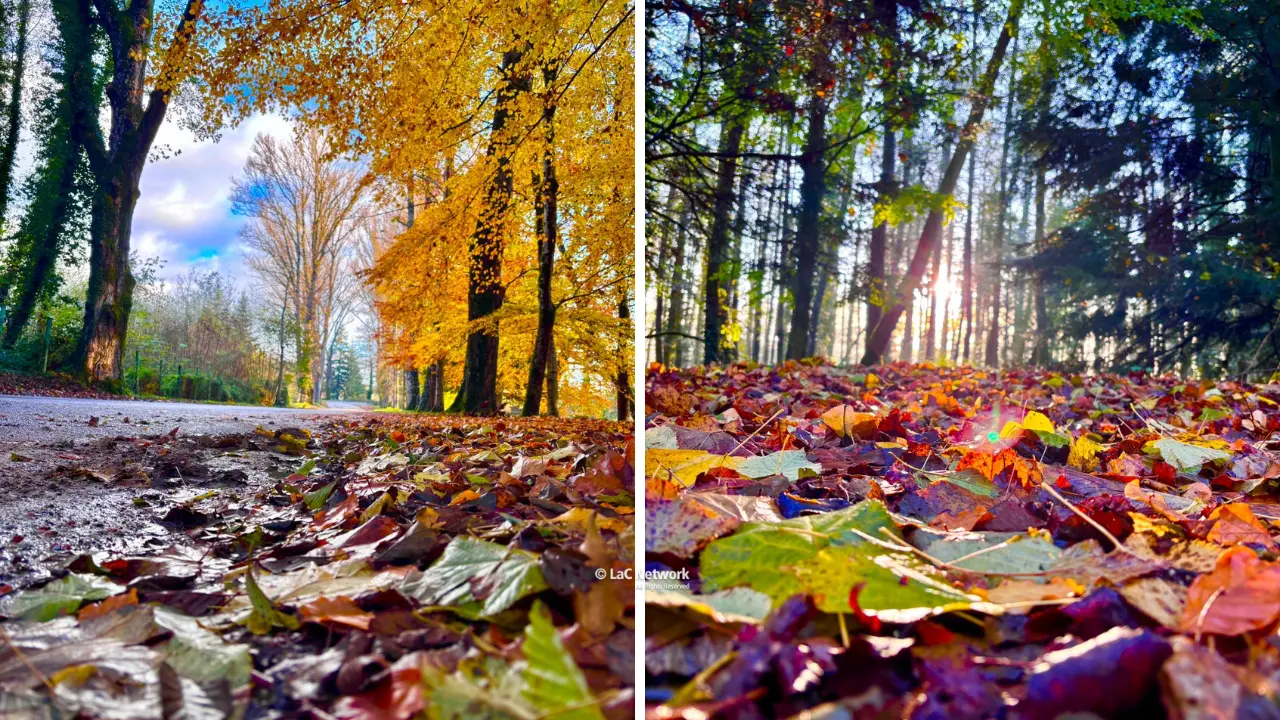 La luce ha sfiorato i tetti, gli stagni, i sentieri, restituendo colore a ogni cosa. I boschi, infuocati dall’autunno, hanno iniziato a brillare con toni caldi aumentando un senso mistico di sospensione, una calma piena, autentica. Un equilibrio raro, dove il paesaggio e l’alba dialogano in modo semplice e perfetto.
