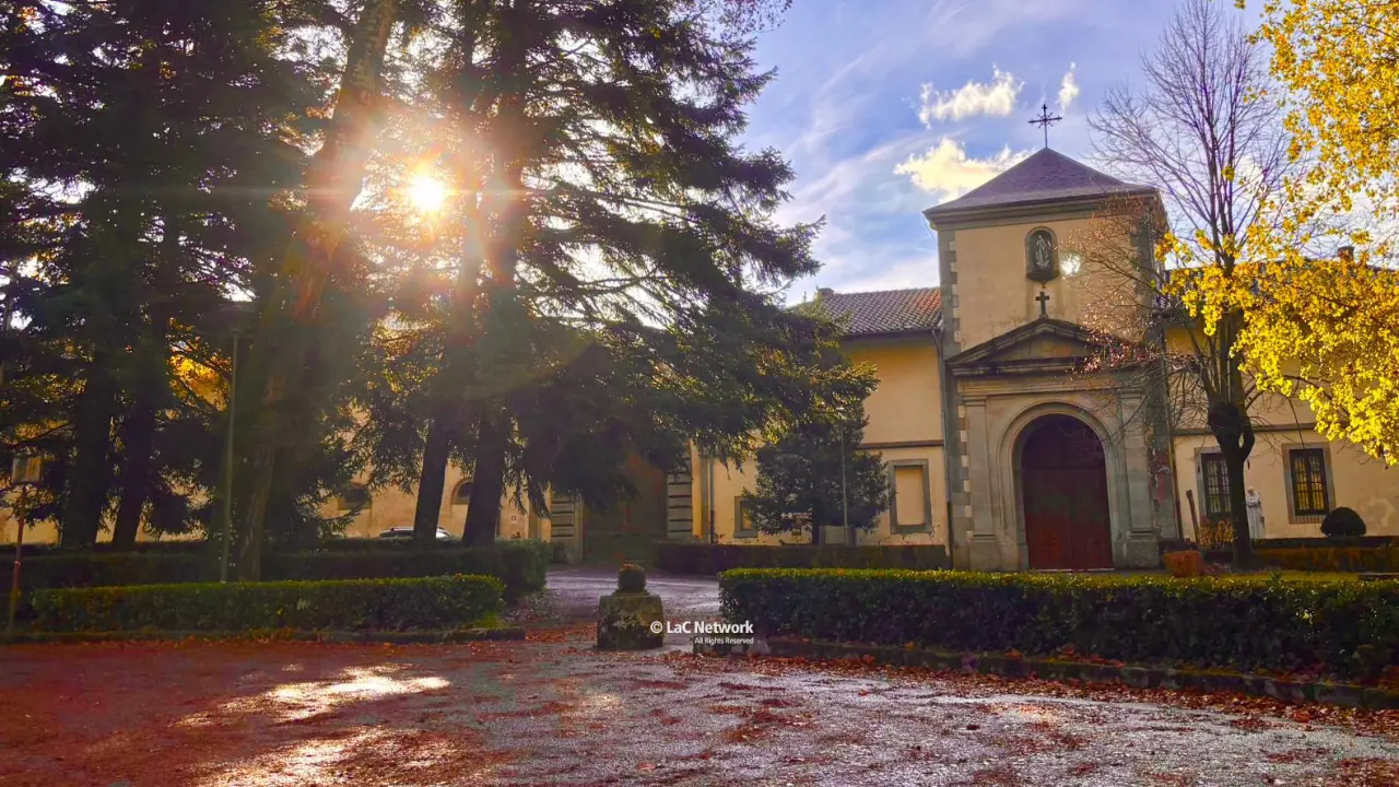 Le foglie autunnali, già aranciate e rosse, riflettono appena la luce che inonda la Certosa quieta, immersa in un’atmosfera fiabesca. Nessun rumore, solo il fruscio leggero degli alberi e il passo morbido dell’alba.