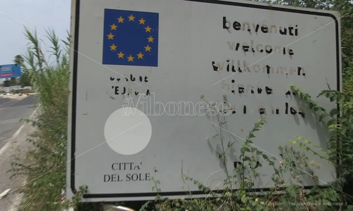 Proseguendo verso Vibo Marina altri operai lavorano lungo il tracciato. In alcuni tratti la vegetazione invade la carreggiata impedendo la piena visibilità agli automobilisti, circostanza che rende ogni curva un pericolo. Difficile, soprattutto per chi non è del posto, orientarsi senza la possibilità di potere leggere la cartellonistica stradale. Una strada che è il biglietto da visita dei turisti che arrivando a Tropea vengono accolti da un’insegna sbiadita dal tempo. [Continua in basso]