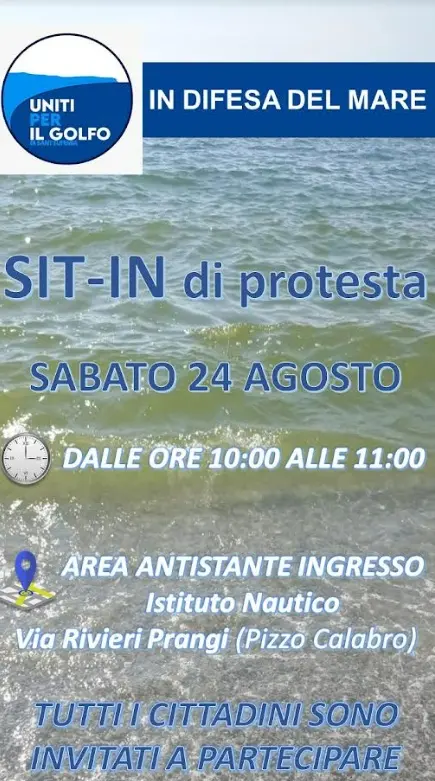 Sabato 24 agosto, nell’area antistante l’Istituto nautico di Pizzo Calabro, dalle ore 10.00 alle ore 11.00, si terrà un sit-in di protesta, teso a sensibilizzare tutte le Istituzioni preposte alla salvaguardia del mare. Il gruppo “Uniti per il Golfo di S. Eufemia” si è reso organizzatore dell’evento, a cui sono invitati tutti i cittadini. «La situazione del mare nel tratto di costa tra Lamezia e Pizzo -riporta la portavoce del gruppo, Anna Rosa, durante l’estate che volge al termine, ha assunto caratteristiche che fanno gridare ad un vero e proprio disastro ambientale, così come si evince dalle numerosissime testimonianze di bagnanti locali e turisti».