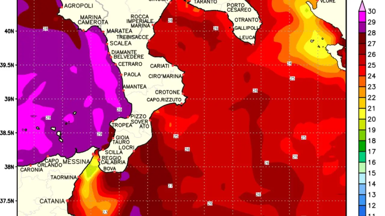 La conseguenza dell’arrivo dell’ondata di calore causerà anche un generale aumento delle temperature della superficie marina: entro fine mese infatti sono previsti valori fino ai 30°C nel Mar Tirreno e in particolare tra il Cosentino e il Catanzarese; il Mar Jonio invece si attesterà intorno ai 25-26°C ma con punte fino ai 28°C nelle aree più a Sud del Reggino.