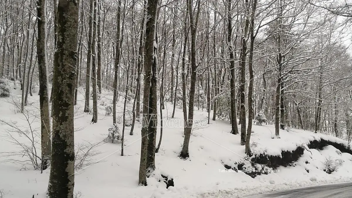 Ha portato la neve anche nel Vibonese il drastico calo delle temperature. In particolare è completamente imbiancata la strada che da Mongiana conduce a Monte Pecoraro che con i suoi 1.423 metri di altezza è il monte più alto delle Serre. Paesaggi fiabeschi che hanno portato oggi anche alla chiusura delle scuole a Nardodipace. Il sindaco, Antonio Demasi, infatti, proprio a causa dell’abbondante nevicata ha emesso un’apposita ordinanza di chiusura delle scuole esistenti sul territorio comunale. Pur essendo il comune di Nardodipace situato a 1.100 metri sul livello del mare, molti studenti per raggiungere le scuole devono attraversare Monte Pecoraro dove abbondante è caduta la neve rendendo pericoloso il transito lungo le strade anche a causa del ghiaccio. Da qui, in via precauzionale, la chiusura delle scuole al pari di quanto deciso anche dai primi cittadini di Fabrizia, Francesco Fazio, e Mongiana Francesco Angiletta. [Continua in basso]