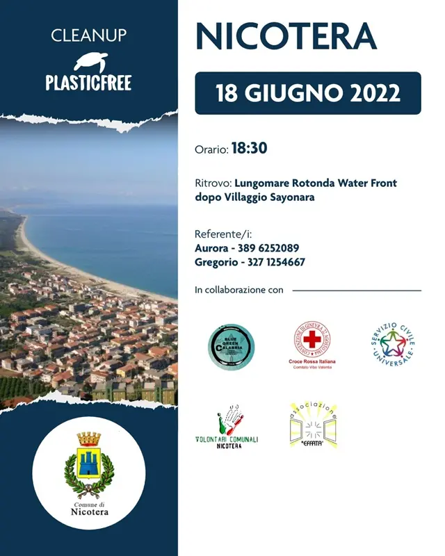 Plastic free approda di nuovo nel Vibonese, con un nuovo appuntamento che vedrà impegnati i volontari a ripulire l’ambiente da plastiche e rifiuti di ogni genere. Teatro dell’iniziativa “Clean up” sarà stavolta Nicotera Marina e in particolare la parte nuova del lungomare, dopo il villaggio Sayonara. L’appuntamento è per il pomeriggio di sabato 18 giugno, a partire dalle ore 18:30. L’evento è patrocinato dal Comune di Nicotera e vedrà la partecipazione tra gli altri anche dei ragazzi del Servizio civile e dei volontari comunali, impegnati anche in questi giorni in attività di pulizia e riqualificazione di diverse aree del territorio nicoterese.