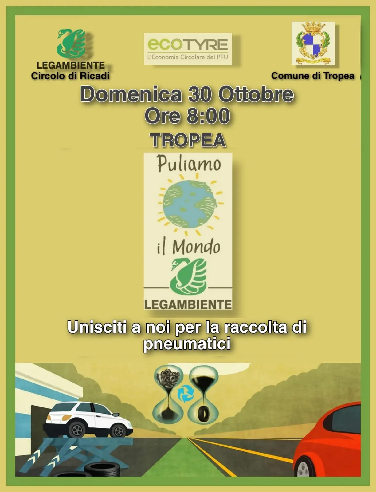Una raccolta speciale di pneumatici abbandonati per restituire decoro alle aree deturpate dai rifiuti in uno dei luoghi simbolo del turismo in Calabria. A Tropea tutto pronto per la giornata ecologica “Puliamo il mondo”. L’iniziativa è in programma il 30 ottobre dalle ore 8.00 e vede coinvolti Legambiente, EcoTyre e il Comune. Un progetto che s’inserisce nel solco delle attività a tutela dell’ambiente in più occasioni promosse dall’ente e dalle associazioni ambientaliste locali sia con il coinvolgimento delle scuole che della cittadinanza. Giornate green che hanno posto l’accento sia sulla volontà di lanciare un forte messaggio al territorio sulla necessità di adoperare i giusti percorsi per lo smaltimento di rifiuti speciali, sia sull’esigenza di formare le nuove generazioni. [Continua in basso]