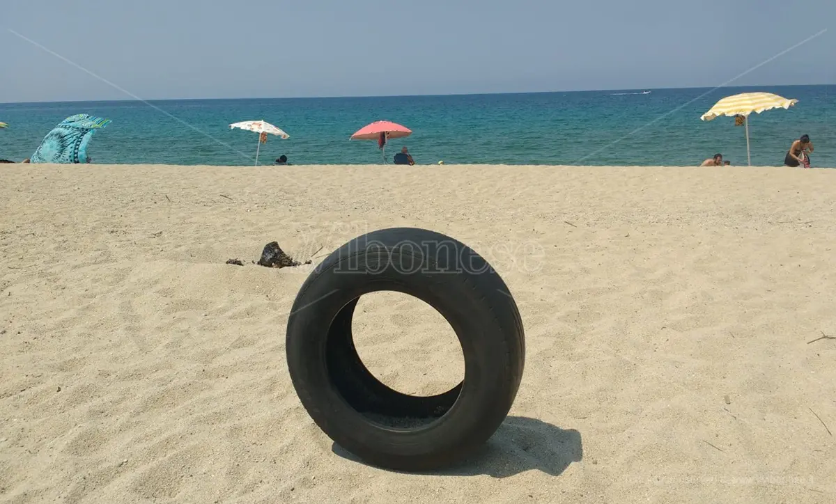 Si mangia, si beve e si bivacca. Poi, via, si torna tutti a casa. Ma la spazzatura prodotta in un’allegra giornata di mare, quella no, la si “abbandona” in loco. Nel giorno post Ferragosto, lo spettacolo che ci si trova davanti a Nicotera Marina, nei diversi punti d’accesso all’immensa spiaggia libera bordata dalla pineta, è desolante: cumuli di sacchetti di plastica strapieni, un indefinito numero di cartoni di pizza e bottiglie di vetro (alcune pericolosamente rotte), piatti e bicchieri usa e getta. A centinaia si contano i mozziconi di sigaretta spenti e maldestramente sotterrati nella sabbia, e sulla spiaggia è perfino comparso un copertone, che sta lì dritto quasi come se fosse un monumento. [Continua in basso]