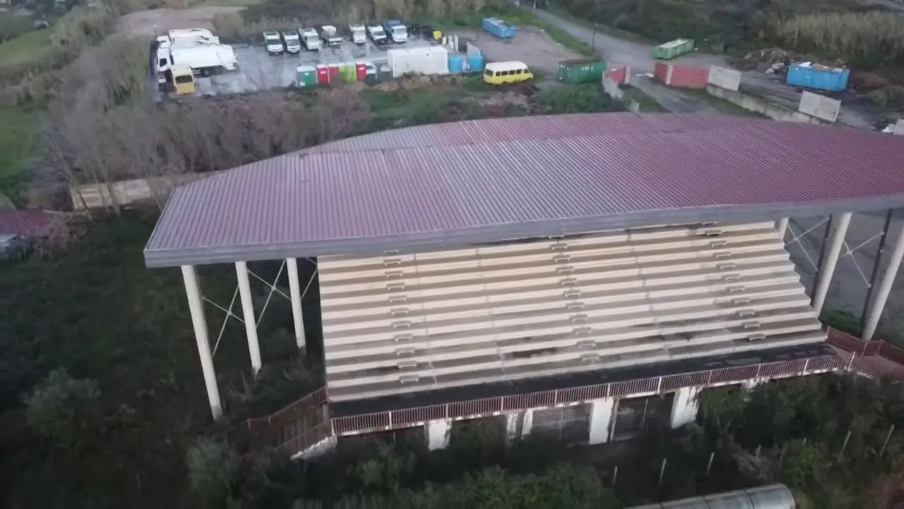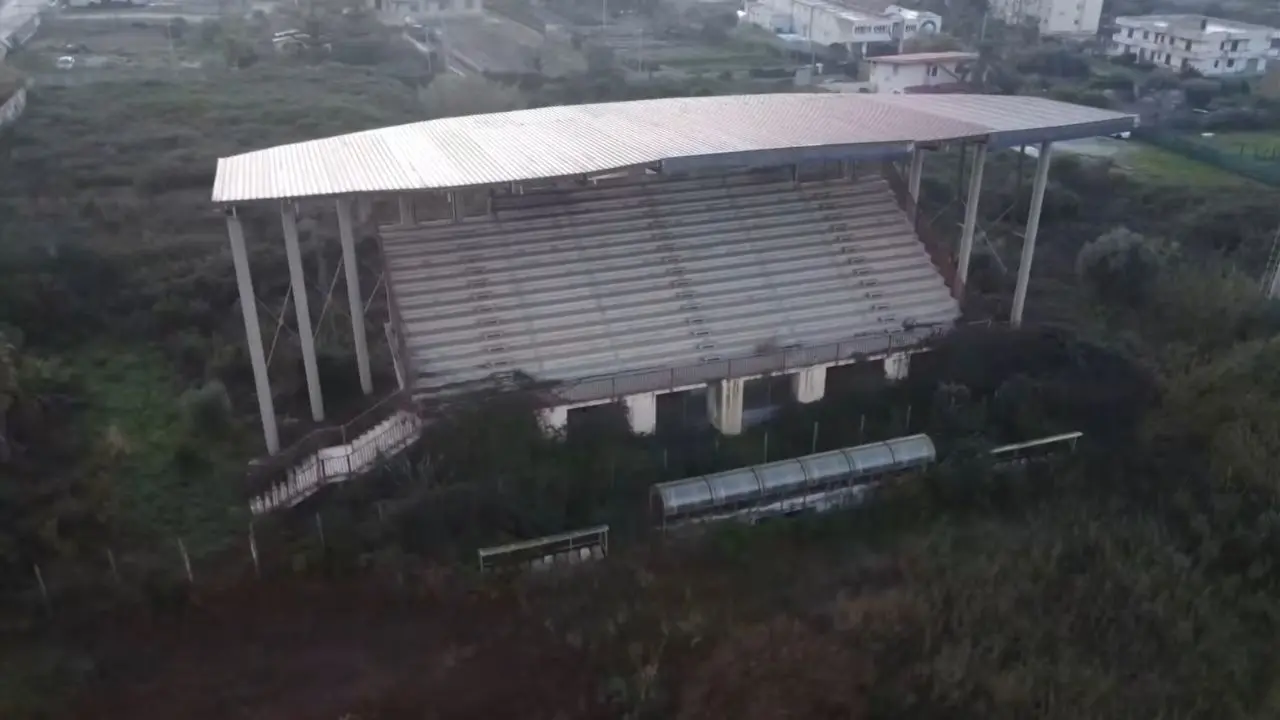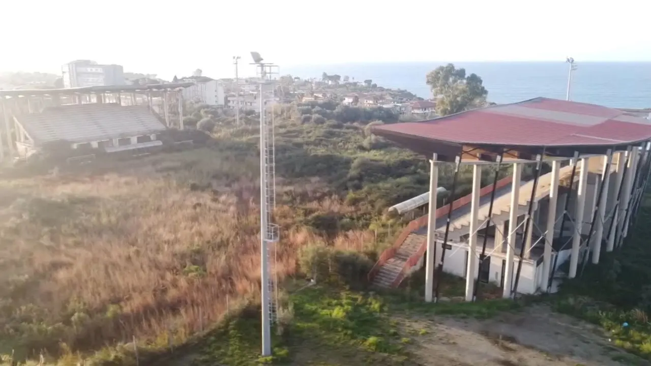 Un’ombra lunga si proietta sul paesaggio di contrada Campo di Sopra, periferia di Tropea: quella dell’impianto sportivo mai inaugurato e sequestrato dal Noe di Reggio Calabria nel lontano 2012, ora sotto la lente dei commissari straordinari del Comune. Un’opera costata circa 6 milioni e mezzo di euro, concepita per valorizzare lo sport locale, ampia 6500 mq, che oggi si presenta come un monumento all’inefficienza. Una cattedrale nel deserto che la forza della natura sta letteralmente facendo scomparire, inghiottita da fitta vegetazione talmente alta da aver già ricoperto le traverse (alte circa 2,5 metri) del campo da calcio. Le riprese aeree a cura del regista tropeano Enzo Carone e del suo collaboratore Pasquale Accorinti, eseguite con un drone circa un mese e mezzo fa (prima che i mezzi della nettezza urbana dapprima depositati al campo in questione fossero incendiati all’isola ecologica di Barricello), testimoniano il profondo degrado dell’area completamente inaccessibile in cui proliferano anche molti serpenti e cinghiali.