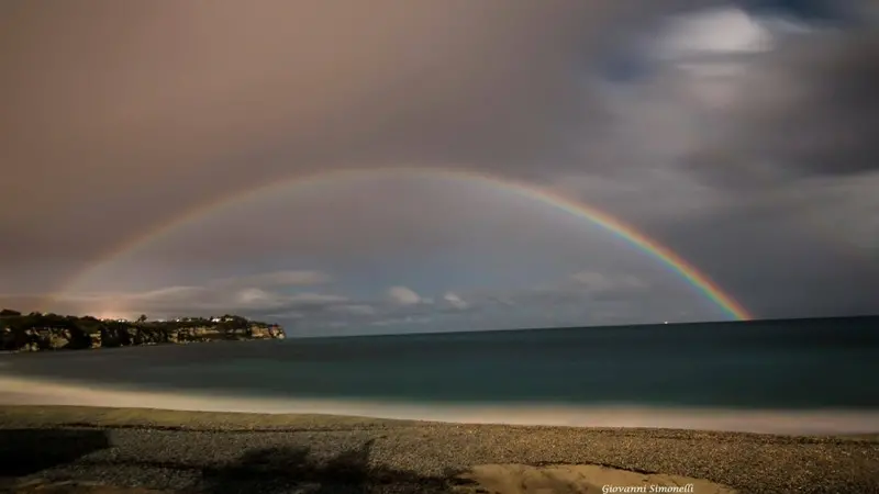 Un raro e suggestivo arcobaleno di luna. A fotografarlo è stato l’altra notte un appassionato di meteorologia di Tropea, Giovanni Simonelli, che collabora con alcuni dei principali portali web che si occupano di previsioni del tempo.