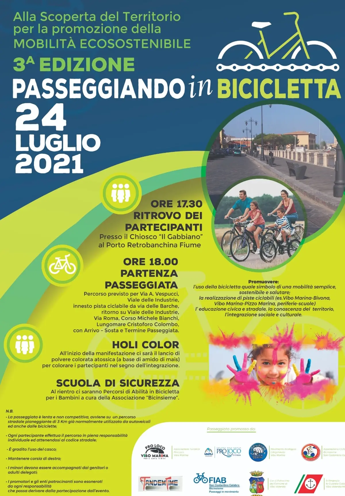 Domani, sabato 24 luglio, alle ore 17,30, a Vibo Marina, presso la banchina Fiume (di fronte alla Capitaneria di porto), si darà il via alla terza edizione dell’iniziativa “Passeggiando in bicicletta”, organizzata dalla locale Pro loco – Aps di Vibo Marina. L’intento principale – spiegano gli organizzatori – è quello di promuovere lo sfruttamento sostenibile del territorio per le sue peculiari caratteristiche, che ben si sposano con l’utilizzo di mezzi di spostamento alternativi all’uso delle automobili, sensibilizzando la comunità e le istituzioni sull’importanza di realizzare nuovi percorsi per la mobilità “green”. La protagonista sarà quindi la bicicletta, quale strumento popolare per piacevoli e salutari spostamenti, che strizza l’occhio all’ambiente e che non passa mai di moda. Si effettuerà una passeggiata a bassa velocità per le vie della frazione, sul lungomare e attraverso l’esistente tratto di pista ciclabile. L’evento sarà del tutto gratuito per i partecipanti ed è rivolto ai cicloamatori di ogni età, con particolare attenzione verso i più piccoli, i quali saranno coinvolti in giochi istruttivi sulla sicurezza, organizzati in collaborazione con l’Associazione ciclistica bicinsieme di San Costantino Calabro e con la Tandem Time. Per chiunque ne abbia voglia, ci sarà anche un momento “holi color”, ovvero colore e allegria, nel segno dell’unione e dell’integrazione.