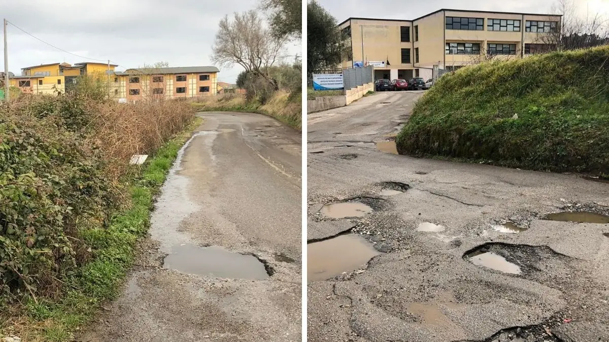 Quello fotografato è un quadro di abbandono totale: «Ci sono vere e proprie voragini che rappresentano un pericolo per chi attraversa la strada. Con la pioggia, poi, la situazione tende a peggiorare perché l’automobilista difficilmente riesce a individuare le buche per tempo».