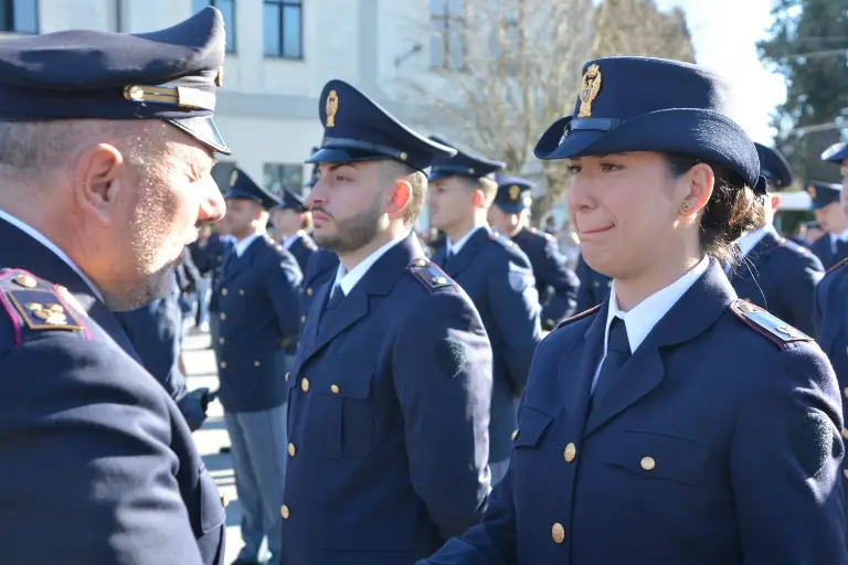 Sono stati presenti i familiari degli allievi, molti dei quali in divisa per un simbolico passaggio di consegne tra generazioni di poliziotti, tutti emozionati al suono dell’inno d’Italia che ha anticipato la consegna.