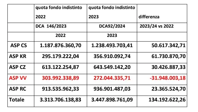 Non solo quando si compara il fondo sanitario definitivo 2023/20224 con il fondo sanitario definitivo del 2022, il taglio diventa una voragine che ho inghiottito solo il territorio vibonese: