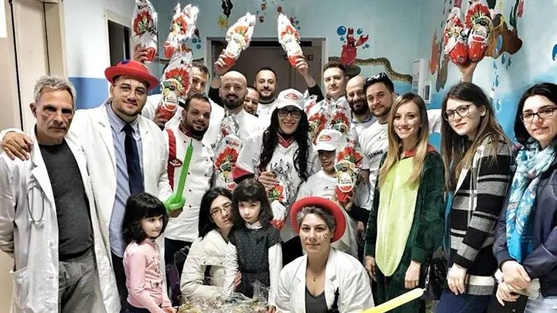 Andare oltre le pizze per portare un sorriso a tutti i bambini che soffrono ed in vista della creazione di una scuola per baby pizzaioli e per i bimbi down al fine di farli sentire uguali agli altri. Con questo intento, domenica di Pasqua alle ore 10 nel reparto Pediatria dell’ospedale Jazzolino di Vibo Valentia, il Movimento pizzaioli italiani e la scuola nazionale pizzaioli professionisti – gestita dall’istruttore Fortuna Francesco, con supervisore la compagna Irene Malfará e coordinatori Nicola Mirarchi Nicola e Gaetano Tolomeo – ha pensato di regalare ai bambini ricoverati delle uova di Pasqua. All’associazione Umani (presidente Stefano Scrugli e vice presidente Mimma Scrugli) che ha collaborato a far nascere l’iniziativa è stata invece affidata la consegna di cestini con cioccolatini preparati dai bambini disabili e autistici per i tutti i bimbi ricoverati. Insieme ai pizzaioli, anche i clown ed il piccolo Samuel intento ad esibirsi dinanzi ai bambini con la pizza freestyle. Presenti all’evento anche i pizzaioli Raffaele Molino, Roberto Raniti, Giuseppe Franzone, Marco Ferraro e Francesco Zavaglia. Una giornata diversa, dunque, per i bimbi ricoverati in ospedale a Vibo con i pizzaioli che prima ancora della passione e dell’arte, che contraddistingue la loro professione, in questo caso hanno messo il cuore in un’iniziativa che ha riscosso grande successo.