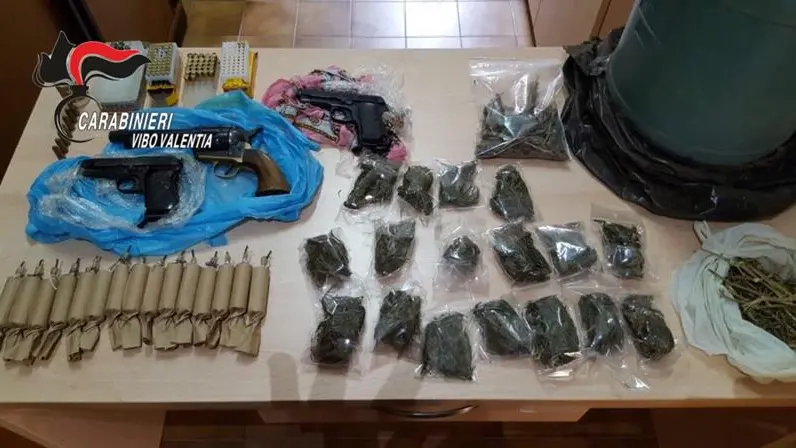 Durante il controllo, i militari dell’Arma, all’interno di un capanno nella loro disponibilità e in un bidone interrato sotto un balcone della propria casa, hanno trovato 17 involucri sigillati di marijuana dal peso di dieci grammi ciascuno, altri due involucri da 25 grammi a testa, due pistole semiautomatiche con matricola abrasa calibro 7.65 con 36 colpi, una pistola revolver calibro 22 con relativi 50 colpi. A quel punto, per Antonio Taccone, 59 anni, Domenica Calabrese, 54 anni, Salvatore Taccone, 31 anni, e Francesco Taccone, 21 anni, è scattato l’arresto per detenzione illegale di armi e munizioni, nonché per la detenzione dello stupefacente. I quattro, dopo le formalità di rito, sono stati tradotti in carcere, a diposizione della magistratura di Vibo Valentia ed in attesa del rito direttissimo.