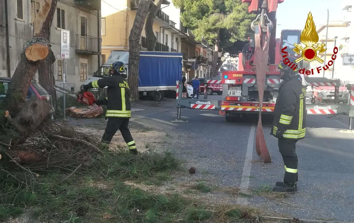 I vigili del fuoco del comando provinciale di Vibo Valentia sono intervenuti questa mattina in viale Affaccio per la caduta di un albero. Un pino marittimo si è infatti spezzato ad un’altezza di circa cinque metri cadendo su un’auto in sosta, una Fiat Punto, tranciando anche alcuni cavi telefonici. Per la rimozione del grosso tronco si è reso necessario l’intervento di una gru al fine di consentire il taglio senza arrecare ulteriori danni alla vettura interessata. Al momento dello schianto in zona non passavano, fortunatamente, pedoni o automobilisti.