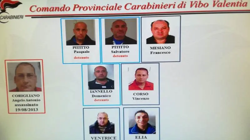 L’omicidio di Angelo Antonio Corigliano viene quindi contestato a: Vincenzo Corso, Gaetano Elia, Domenico Iannello, Francesco Mesiano, Giuseppe Ventrice, Pasquale Pititto e Salvatore Pititto. L’omicidio di Giuseppe Mesiano viene invece contestato a: Giuseppe Corigliano che avrebbe agito in concorso con Angelo Antonio Corigliano (quest’ultimo poi ucciso il 20 agosto 2013). L’accusa di tentata estorsione ad un supermercato dei Corigliano con sede a Santa Domenica di Ricadi viene poi contestata a Francesco Mesiano, così come pure quella di minaccia. Reati aggravati dalle modalità mafiose. Francesco Mesiano e Rocco Iannello il 16 luglio del 2013 avrebbero quindi appiccato il fuoco a Mileto al portone di casa della famiglia Corigliano. Francesco Mesiano viene indicato come il mandante dell’incendio, Rocco Iannello sarebbe stato l’esecutore materiale. Il tutto quale “sanzione” per il rifiuto opposto da Angelo Antonio Corigliano (poi ucciso il 20 agosto 2013) di mettere in atto un danneggiamento all’esercizio commerciale di proprietà dei fratelli Corigliano, sito a Santa Domenica di Ricadi, al fine di costringere i titolari dell’attività commerciale a cedere alle loro richieste estorsive.