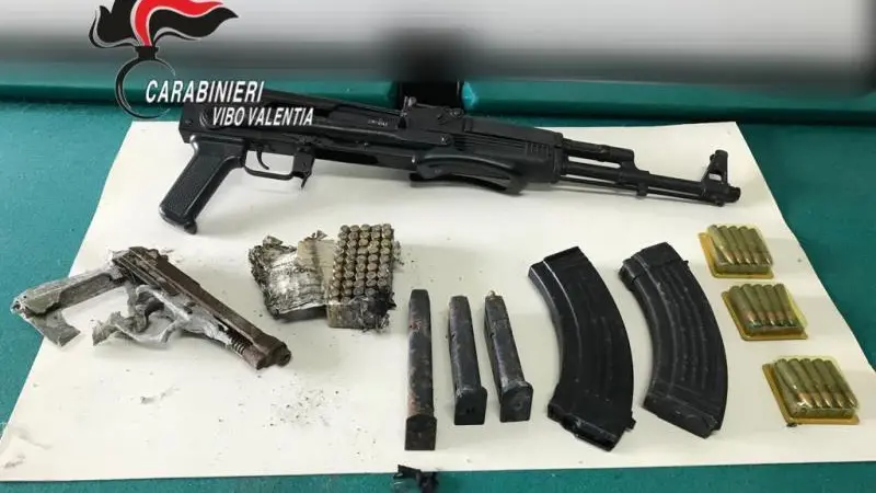 I carabinieri della Stazione di San Calogero hanno eseguito una perquisizione locale nei confronti di V. R. di 72 anni. Nei giorni precedenti i militari avevano notato nell’uomo un’insolita agitazione nel corso dei controlli espletati nella zona di sua residenza. Per tale ragione, i militari hanno condotto dei controlli nella sua abitazione e in un manufatto adiacente che in passato era stato di sua proprietà. Proprio in quest’ultimo edificio – adibito a magazzino – l’intuizione dei carabinieri si è rivelata corretta. La perquisizione ha consentito di individuare su un muro perimetrale un’intercapedine al cui interno era stato ricavato un vano utilizzato come deposito di un fucile d’assalto Kalashnikov AK M70, di due caricatori bifilari e 30 cartucce cal. 7.62 millimetri, tutto in perfetto stato d’uso. Non solo. Le ricerche si sono estese nelle aree circostanti.