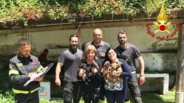 I Vigili del Fuoco del Comando Provinciale di Vibo Valentia sono intervenuti oggi, intorno alle ore 12, nel comune di San Costantino Calabro in località Fontana Vecchia per il recupero di alcuni cagnolini. Due passanti udendo il guaire dei cuccioli provenire da una scarpata hanno chiesto l’intervento dei Vigili del Fuoco, i quali, giunti tempestivamente in loco, dopo essersi calati per circa 10 metri e percorso un sentiero invaso da arbusti e sterpaglie hanno recuperato i cinque cagnolini consegnandoli ai due passanti.