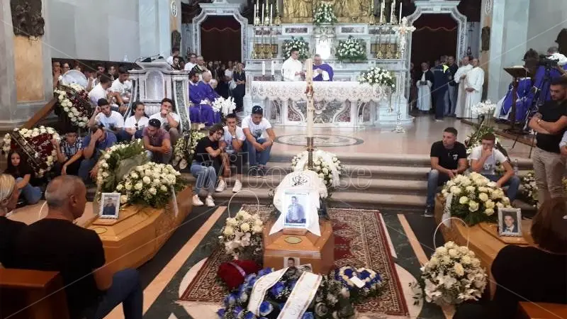Le tre bare vengono adagiate per terra e coperte di rose bianche, con le foto dei ragazzi poste sopra. La commozione è trattenuta a stento, mista al dolore di chi piange tre ragazzi scomparsi prematuramente, vittime di un’altra strage sulle strade della provincia di Vibo Valentia.