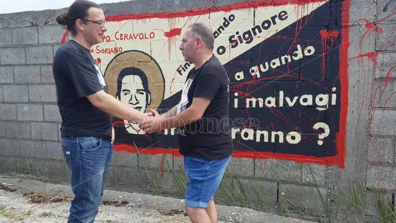 C’è il ritratto di Filippo Ceravolo su un muro di Vibo Valentia. Accanto una scritta tratta dalla bibbia. Non un luogo a caso, ma una parete che – in via Renato Guttuso all’imbocco della galleria – fino a pochi giorni fa recava una frase neonazista inneggiante a Hitler. Un messaggio di odio che Luciano Gagliardi, un vibonese da sempre impegnato nel sociale, ha voluto coprire con un messaggio di amore e di speranza. Martino Ceravolo, padre del 19enne vittima innocente della mafia – massacrato a colpi di fucile mentre rientrava a Soriano insieme al vero bersaglio dell’agguato – non era a conoscenza di questo dono dedicato al figlio. Ed è commosso nel momento in cui incontra l’autore. Martino indossa la maglietta con il nome del figlio. Quel figlio la cui morte grida verità e giustizia. Le stesse che la famiglia attende da quella maledetta sera del 25 ottobre del 2012. Un appello che i genitori di Filippo rivolgeranno ancora una volta a Papa Francesco. Il pontefice ha deciso di incontrarli nuovamente nell’udienza che si terrà nei prossimi giorni.
