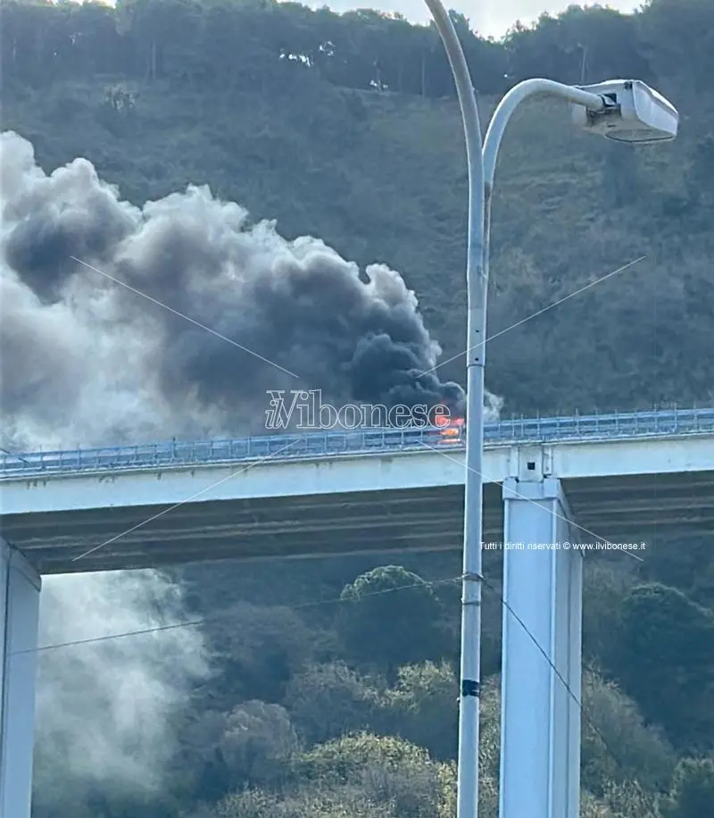 Traffico momentaneamente bloccato sul ponte autostradale di Pizzo Calabro per permettere ai vigili del fuoco provenienti da Vibo Valentia di spegnere l’incendio che ha distrutto un tir. Il mezzo stava procedendo in direzione sud quando per cause ancora in corso di accertamento è andato a fuoco. Le fiamme – dopo alcune esplosioni – hanno avvolto il tir. Sul posto anche la polizia stradale per il controllo della circolazione stradale. Il mezzo trasportava salumi ed il conducente dopo aver udito le prime esplosioni ha arrestato la corsa e scendendo dal mezzo è riuscito a mettersi in salvo. Il transito è al momento interdetto in entrambe le direzioni, tra Pizzo Calabro e Sant’Onofrio, tra il km 339,960 ed il km 349,720. Per i veicoli in direzione sud il traffico viene deviato all’uscita di Pizzo Calabro per poi prendere la Statale 18, successivamente la Statale 606 per poi rientrare in autostrada a Sant’Onofrio. Percorso inverso per i veicoli diretti verso nord. SEGUONO AGGIORNAMENTI