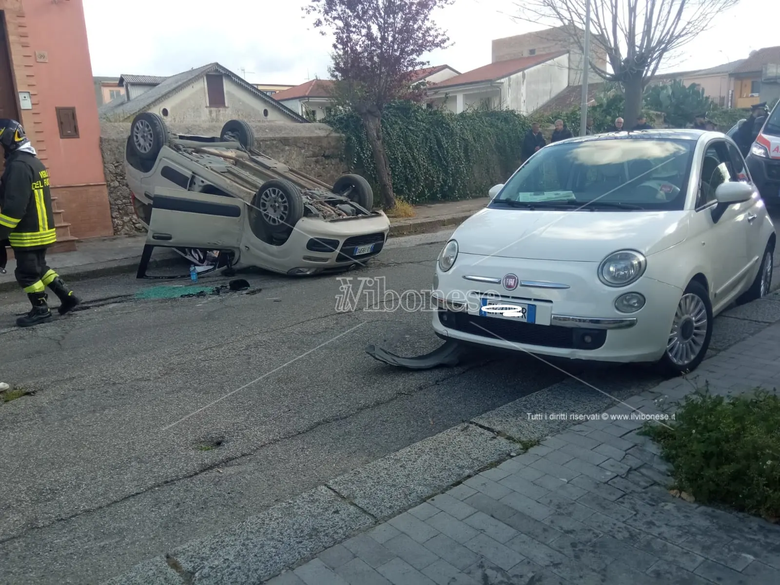 Incidente stradale in pieno centro a Mileto. Per cause ancora in corso di accertamento, una Fiat Panda si è scontrata contro una Fiat 500 parcheggiata sulla pubblica via. L’incidente è avvenuto in via Conte Ruggero e la Panda – alla cui guida si trovava una donna – dopo lo scontro si è capovolta. Sul posto si sono portati i vigili del fuoco, i sanitari del 118 con un’ambulanza e la polizia municipale, oltre ai carabinieri per i rilievi del caso. La donna, ferita ad una spalla ma vigile, è stata trasferita in ospedale a Vibo Valentia per ulteriori accertamenti.