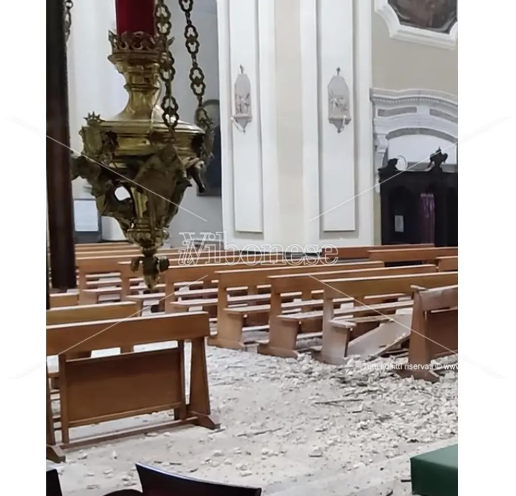 Tragedia sfiorata e conta dei danni a Tropea a causa del crollo di parte della cupola della Chiesa del Gesù (fondata dai gesuiti) gestita dai redentoristi. Un’ora prima era in corso di celebrazione la santa messa, iniziata alle ore 10 del mattino e terminata alle ore 10.50. Finita la messa, un gruppo di visitatori è rimasto all’interno, quando verso le ore 11.30 parte della cupola è caduta giù, con intonaco e calcinacci finiti sui banchi dei fedeli che, fortunatamente, in quel momento erano vuoti. Una tragedia sfiorata, quindi, perché ben più gravi potevano essere le conseguenze del crollo se il cedimento si fosse registrato a messa in corso. La chiesa resterà ora chiusa per la conta dei danni e per la messa in sicurezza i cui tempi non sono al momento prevedibili.