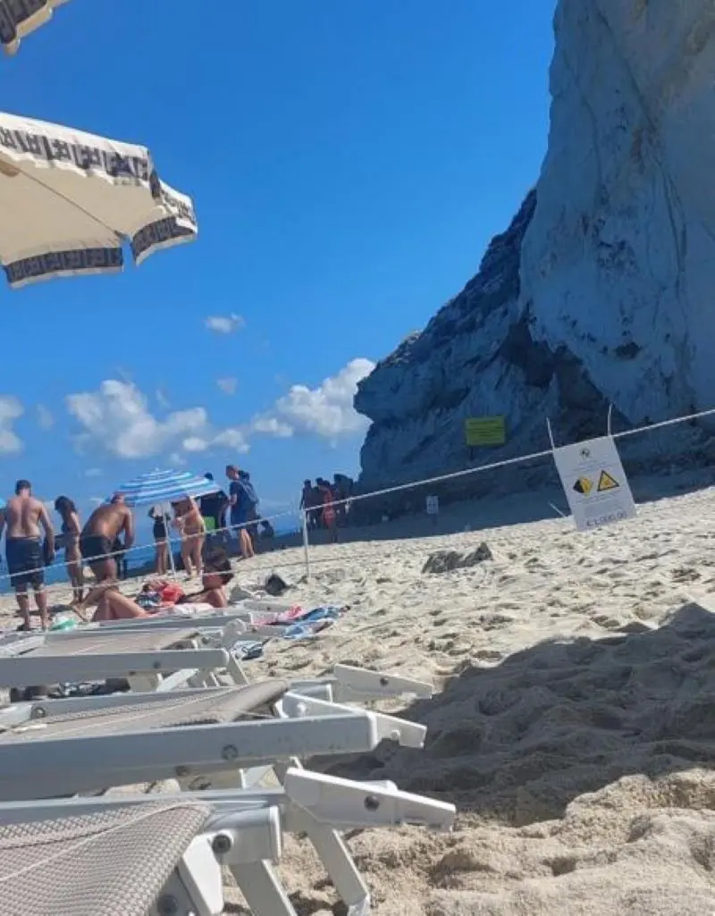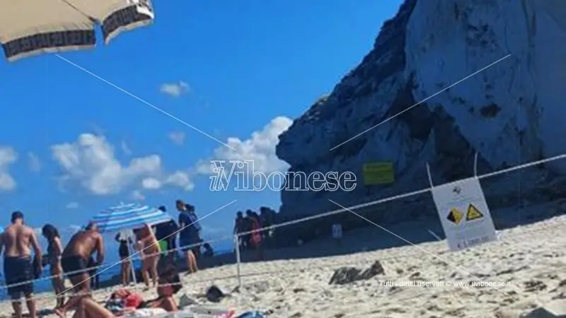 Tropea, turisti sdraiati al sole sotto la frana dell’Isola non curanti del pericolo