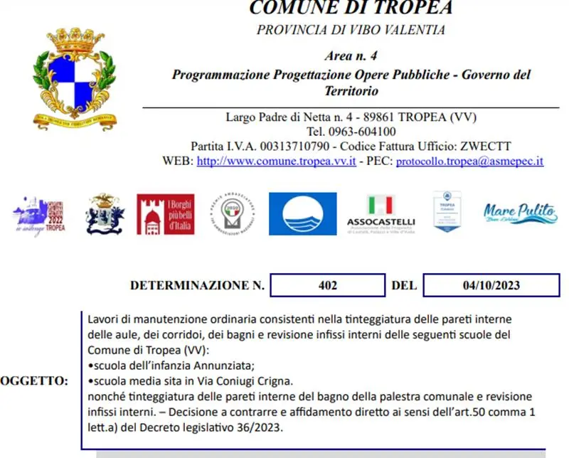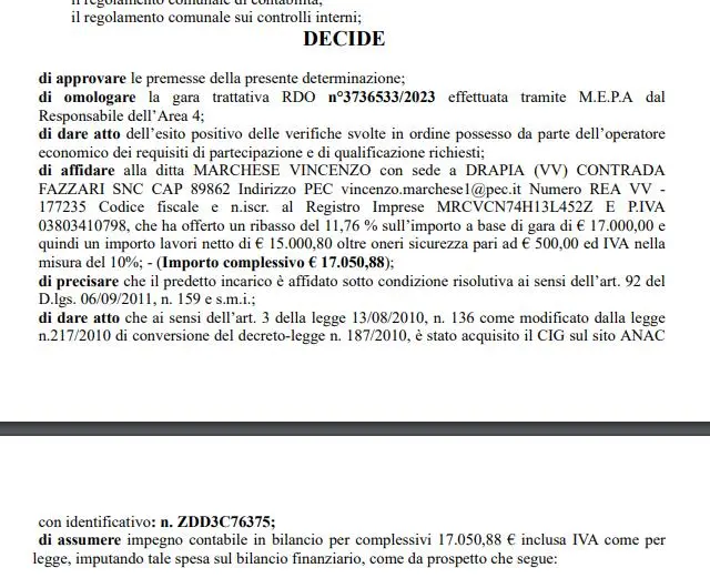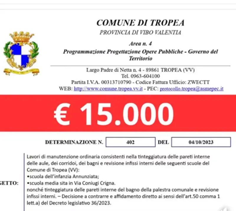 Pubblica sulla propria bacheca Facebook le determine dell’Albo pretorio del Comune di Tropea e il fratello riceve “visite” poco gradite sino a casa con l’invito (per nulla “gentile”, a quanto pare) a cancellare tutto. Succede al consigliere di minoranza del Comune di Tropea, Antonio Piserà, “colpevole” agli occhi di qualcuno di aver pubblicato sui social alcune determine di spesa del Comune ed in particolare una riguardante i lavori di tinteggiatura di diverse scuole per l’importo complessivo di 15mila euro. Attraverso un video, sia Antonio Piserà che il fratello ristoratore hanno dato notizia della “visita” ricevuta da quest’ultimo mentre si trovava in casa con l’anziano padre affetto da diverse patologie. “Visita” per intimare la cancellazione del Post con la determina anche attraverso una successiva telefonata allo stesso consigliere. “Nel pubblicare la determina – afferma Piserà – non ho emesso alcun giudizio, né detto nulla sull’affidamento. Ho semplicemente condiviso la determina che tutti i cittadini possono vedere in quanto pubblica. Sono cose incresciose che si verificano da tempo in questo clima a Tropea, ma sicuramente la vicenda andrà avanti per le vie legali. Il lavoro e l’operato di un consigliere comunale non può essere fermato con simili atteggiamenti ed episodi”. Piserà ha quindi inoltrato un esposto al procuratore di Vibo Valentia, Camillo Falvo, denunciando di aver subito un’intimidazione. Per parte nostra pubblichiamo in basso la determina in questione oggetto della “contesa”, preannunciando che ci occuperemo prestissimo anche di tutte le altre determine e di tutte le spese del Comune di Tropea che riteniamo di dover portare all’attenzione dell’opinione pubblica, rivendicando il diritto di critica (prima ancora che di cronaca) che “qualcuno” – nell’inesistente “Principato” di Tropea – evidentemente mal sopporta.