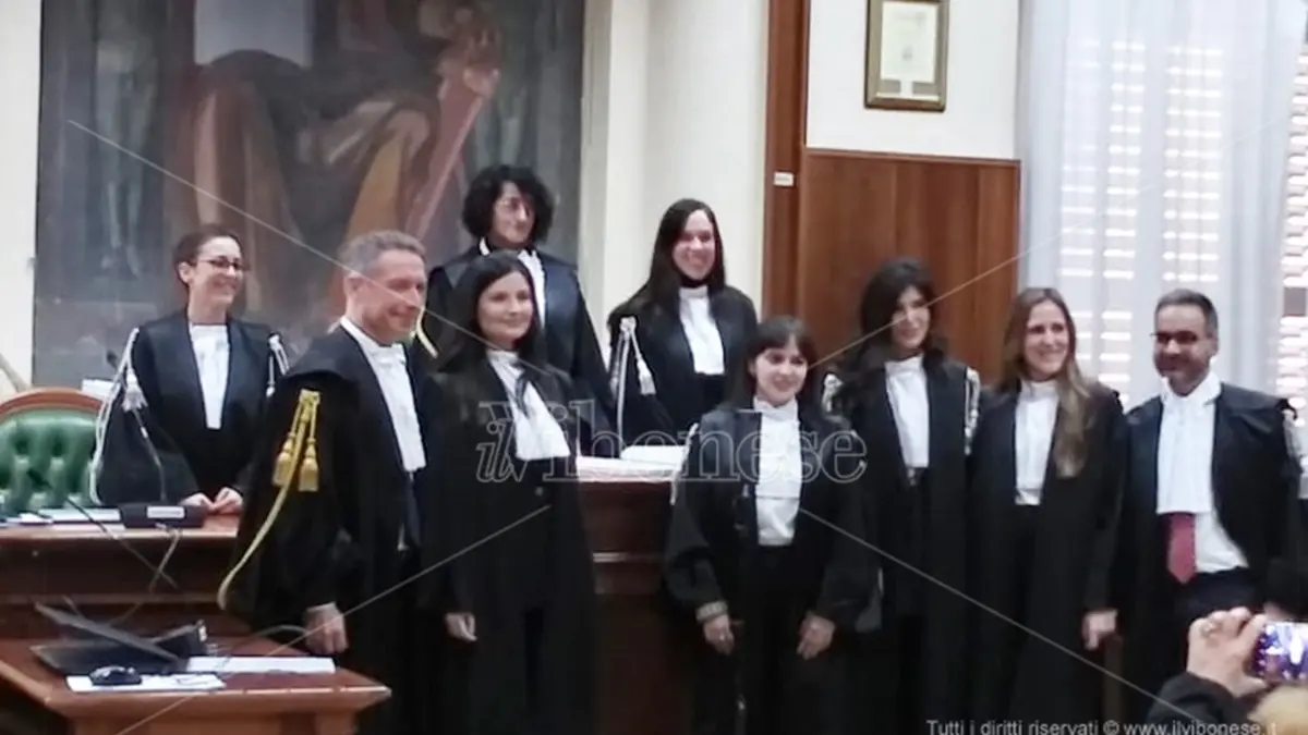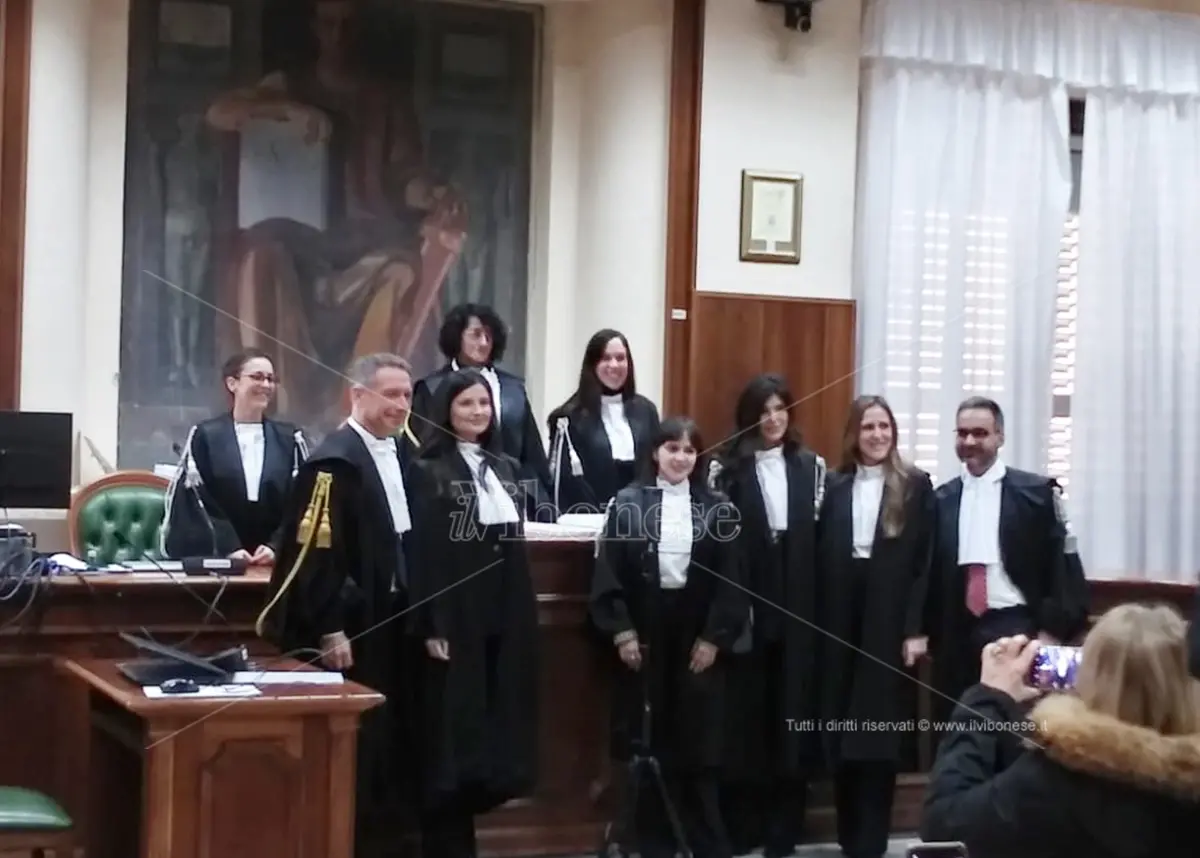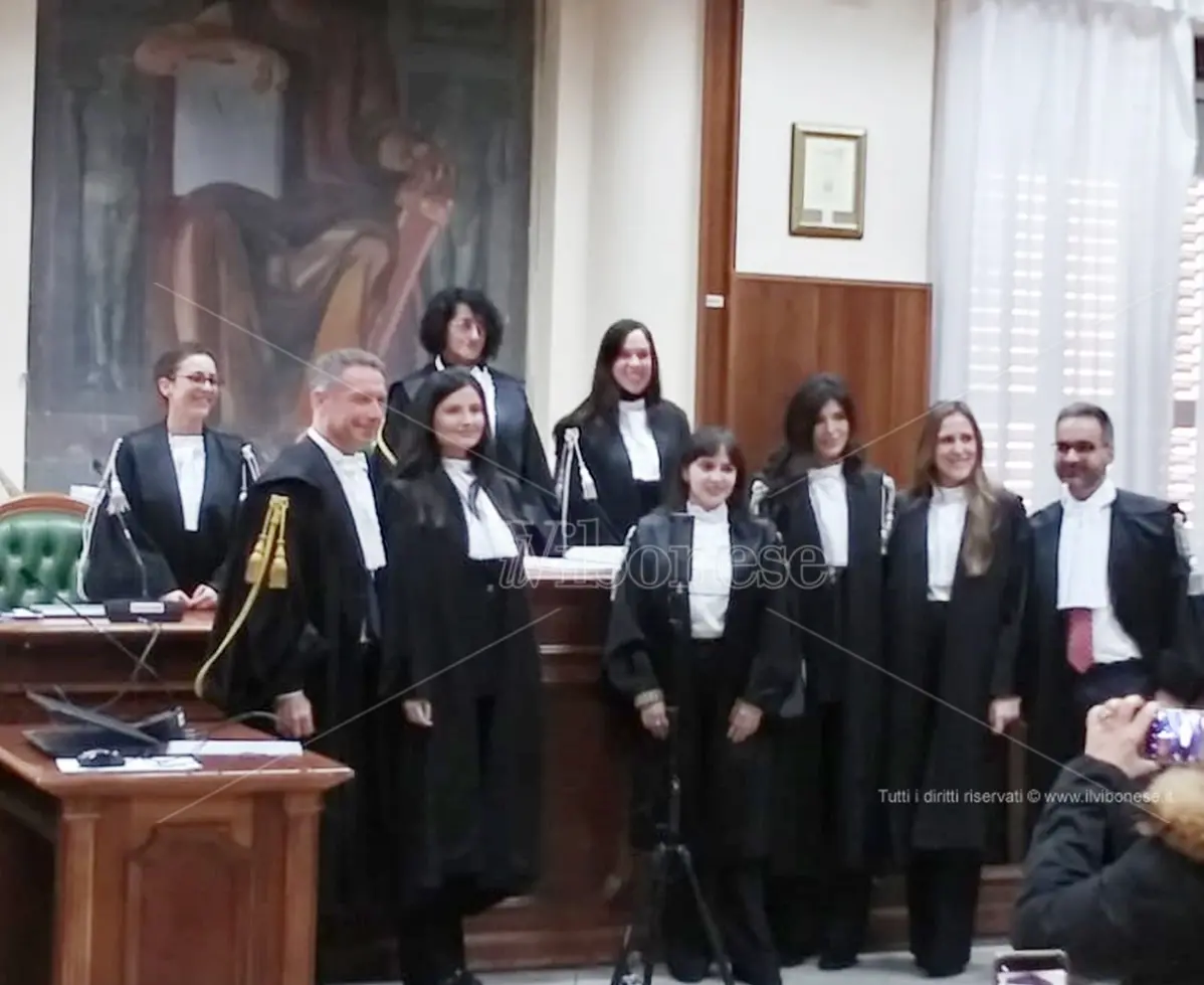Hanno preso servizio stamane al Tribunale di Vibo Valentia, i cinque nuovi magistrati ordinari nominati nei giorni scorsi dalla terza commissione del Consiglio Superiore della Magistratura. Nell’aula Emilio Sacerdote del Tribunale si è tenuta stamane la cerimonia di insediamento dinanzi alla presidente della sezione penale Tiziana Macrì ed al procuratore della Repubblica di Vibo Camillo Falvo. E’ toccato ai due magistrati dare il benvenuto i nuovi cinque colleghi – immessi oggi nelle nuove funzioni – ed in particolare al nuovo pm Maria Bernabei (che ha terminato il proprio a Perugia) ed ai quattro giudici ordinari che prenderanno invece servizio al Tribunale di Vibo: Eugenia Di Bella (tirocinio a Catania), Luca Brunetti (tirocinio a L’Aquila), Ida Cuffaro (tirocinio a Roma), Rosamaria Pisano (tirocinio a Roma). I cinque nuovi magistrati vanno a colmare i vuoti di organico del Palazzo di giustizia vibonese e spetterà ora al presidente del Tribunale assegnare i nuovi giudici nei settori più in “sofferenza” e con tanto arretrato da smaltire in particolare nel civile e nella sezione Lavoro. Il turn over chiama i magistrati del Tribunale di Vibo, ciclicamente, ad uno sforzo immane del quale i nuovi arrivati prenderanno ben presto piena consapevolezza. “Non vi attende un compito facile – ha dichiarato il procuratore Falvo – ma dal punto di vista formativo ed umano l’esperienza che vi apprestate a vivere a Vibo Valentia non ha eguali nel resto del Paese perché proprio in questo Tribunale sono stati celebrati negli ultimi anni i processi più importanti d’Italia. Vi troverete a lavorare accanto a magistrati giovani ma preparati che sapranno ben guidarvi, così come troverete un guida nella presidente della sezione penale” ovvero il giudice Tiziana Macrì che ha voluto anche lei incoraggiare i nuovi arrivati promettendo sostegno e aiuto da parte dei colleghi più anziani. Tanto lavoro aspetta i nuovi magistrati, dunque, ma oggi per loro è soprattutto una giornata di emozioni per il raggiungimento di un traguardo importante inseguito con tenacia, costanza e tanto studio. A tutti loro va l’augurio di buon lavoro anche dalla redazione de Il Vibonese.it.