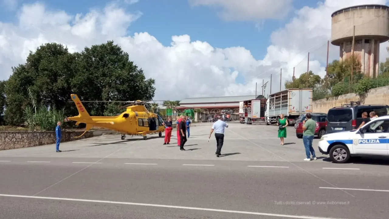 Un incidente sul lavoro si è verificato stamani nel Vibonese. Il titolare di un’azienda vinicola sita a Paravati, frazione di Mileto, è stato travolto da una pedana di vini. Dai primi accertamenti, non sarebbe stato colpito in pieno. Attivata immediatamente la macchina dei soccorsi con l’arrivo sul posto di una ambulanza e di un elisoccorso. Le condizioni, da quanto si apprende, sono critiche ma non verserebbe in pericolo di vita. Presenti anche i carabinieri e i vigili urbani. L’uomo, vigile al momento dell’arrivo dei sanitari, è stato trasferito all’ospedale di Lamezia Terme.