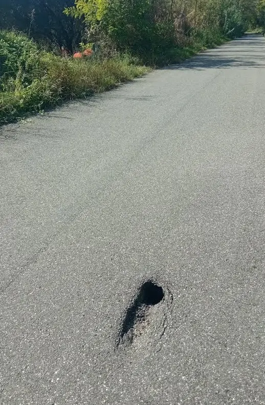 A questo punto verrebbe da dire che agli ignari automobilisti non si fa mancare proprio niente. Come se non bastasse, infatti, ad “abbellire” il tutto ci pensa anche la carcassa di un grosso cinghiale lasciato a marcire da giorni sulla strada, dopo essere stato presumibilmente investito da qualche automezzo, e il permanere del restringimento (con conseguente obbligo di percorrenza a senso alternato) di un tratto di carreggiata franato da anni, tra l’altro situato nei pressi di una pericolosa curva a gomito e dell’entrata di un locale mattatoio.
