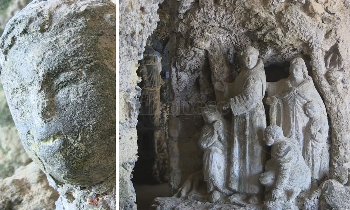 E basta entrare nella grotta per accorgersi che l’allarme è tutt’altro che infondato. «Gran parte delle statue, in particolar modo nelle zone basse, sono invase da efflorescenze saline cristalli di sali minerali che compaiono tra una evaporazione dell’umidità e l’altra, rendendo irriconoscibili – dichiara Montesanti – rilievi, decorazioni e gran parte degli affreschi. Constato che l’umidità, unita a sbalzi di temperatura ha quasi frantumato il 60% delle statue in arenaria nelle loro parti sporgenti dei visi, degli arti o degli oggetti che ne caratterizzano la figura; alcune sono ormai ridotte a monconi irriconoscibili. In alcuni punti delle pareti interne, tra il gruppo della Pesca Miracolosa e il Presepe con la Natività scorre dell’acqua che ha divelto alcuni personaggi. Praticamente non v’è gruppo scultoreo in grado di non frantumarsi lentamente per tale condizione di diffusa umidità», continua lo storico.
