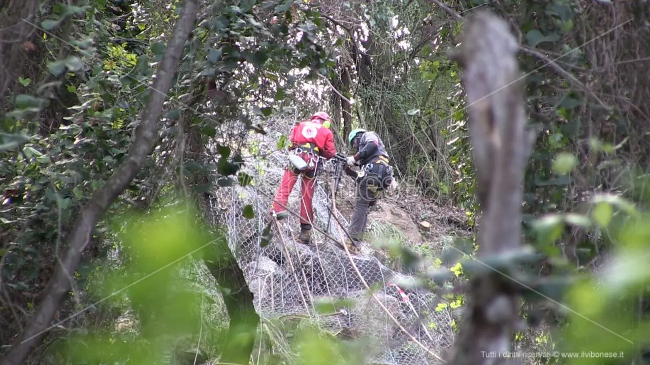 Dal 26 marzo la Statale 18 è chiusa al traffico e non si sa ancora quando riaprirà. L’Anas ha avviato gli interventi in urgenza per la messa in sicurezza del costone. I lavori, per un importo di circa 600 mila euro – spiegano – «consistono in attività di perlustrazione locale, disboscamento e “disgaggio” in sicurezza dei blocchi rocciosi in condizioni di evidente instabilità, con eventuale imbracamento dei massi di dimensioni ciclopiche mediante cavi e reti metalliche chiodate al terreno». Insomma, non una cosa da poco. Ecco perché in azione ci sono operai altamente specializzati che con tecniche di arrampicata intervengono nei punti più inaccessibili.