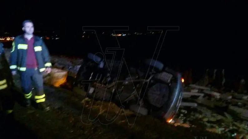 Tragedia sfiorata a Vibo Marina, auto si ribalta nella strada franata: contuso il conducente (FOTO)