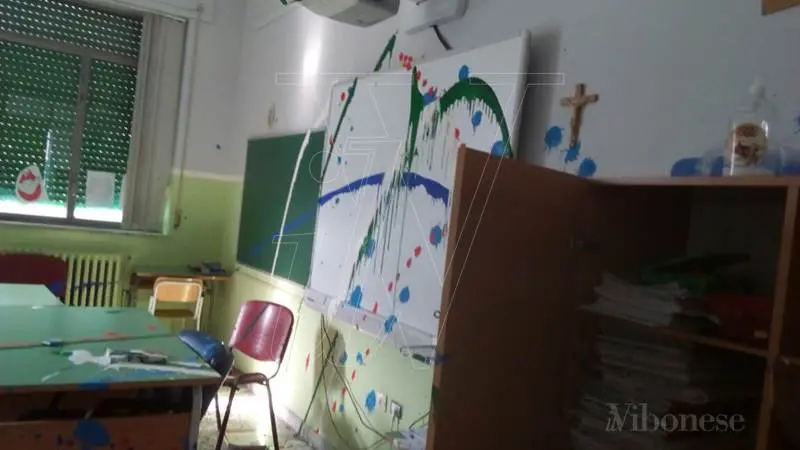 Vandali in azione nell’istituto scolastico “De Maria” di Vibo Marina. Nel corso della notte ignoti si sono introdotti nella scuola elementare e, probabilmente passando per la scala antincendio, raggiunto il piano superiore, hanno devastato le aule, distrutto computer e lavagne digitali, imbrattato i muri. Vetri delle finestre in frantumi e locali a soqquadro. Rovinati anche i lavori dei bambini.