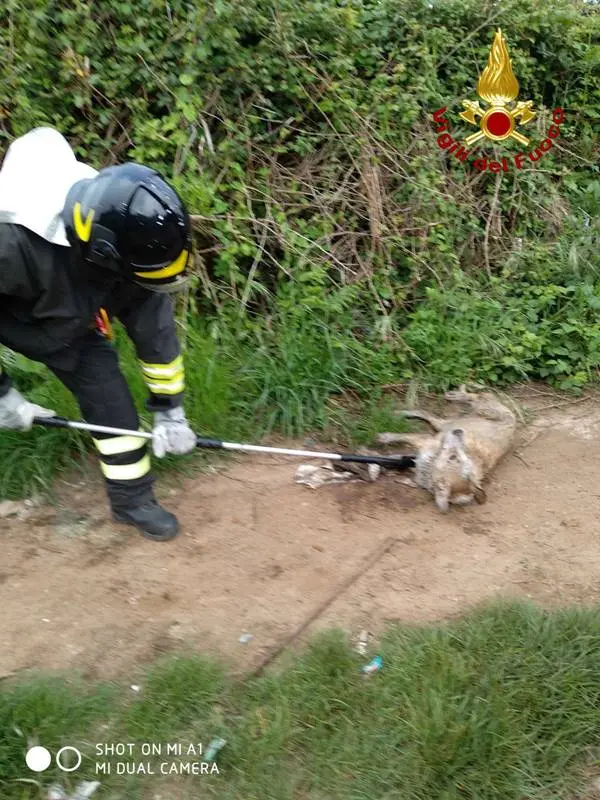 I vigili del fuoco del Comando provinciale sono intervenuti oggi, alle 7.30 circa, a Vibo Valentia, traversa via Giovanni Paolo II, per il recupero di un cane. Un cucciolo di meticcio, durante la notte, era caduto all’interno di un pozzetto ed il suo latrare ha attirato l’attenzione di alcuni residenti della zona che hanno allertato i Vigili del fuoco che, giunti sul posto, hanno estratto il cucciolo dal pozzetto [foto in basso] e affidato alle cure del veterinario dell’Asp intervenuto sul posto.